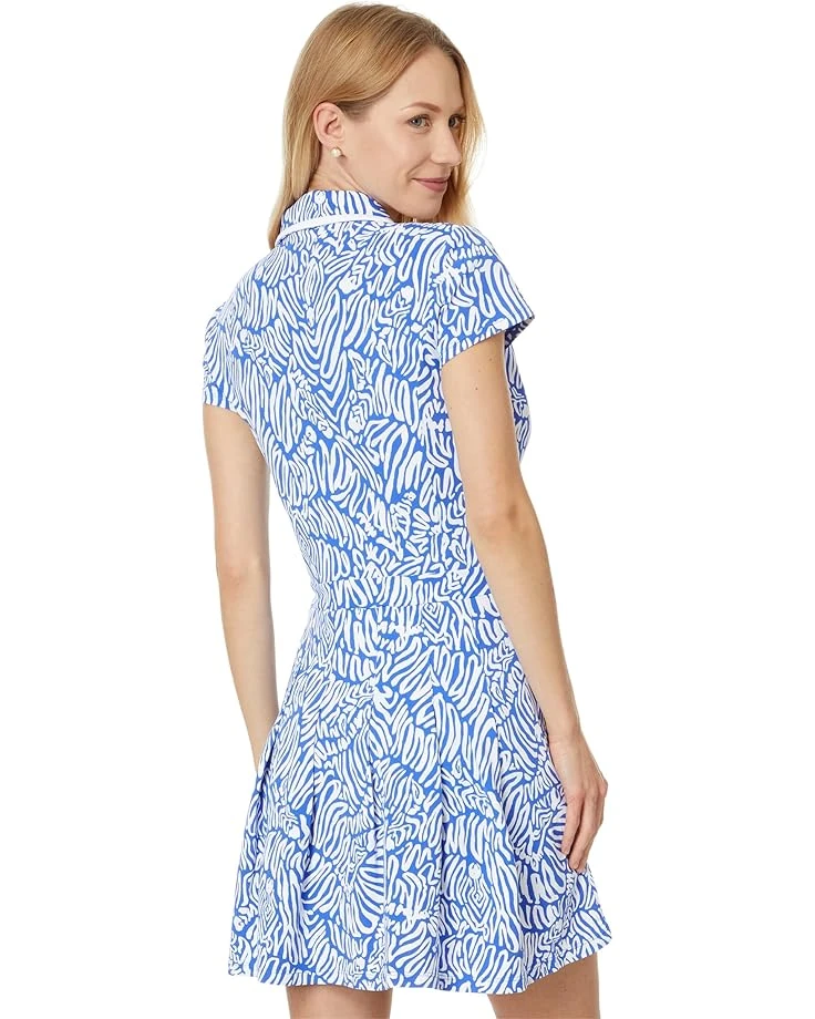 - Look and feel your best wearing the Lilly Pulitzer® Alona Dress! Designed as a Luxletic pique knit golf dress, it features moisture management and UPF 50+ sun protection for ultimate comfort and safety during your game. The collared neckline with quarter-zip placket, short sleeves, and pleated skort with undershort create a chic and practical ensemble. Plus, the allover multicolored tropical print adds a touch of fun and playfulness to your outfit, making it a must-have for any fashionable golfer!