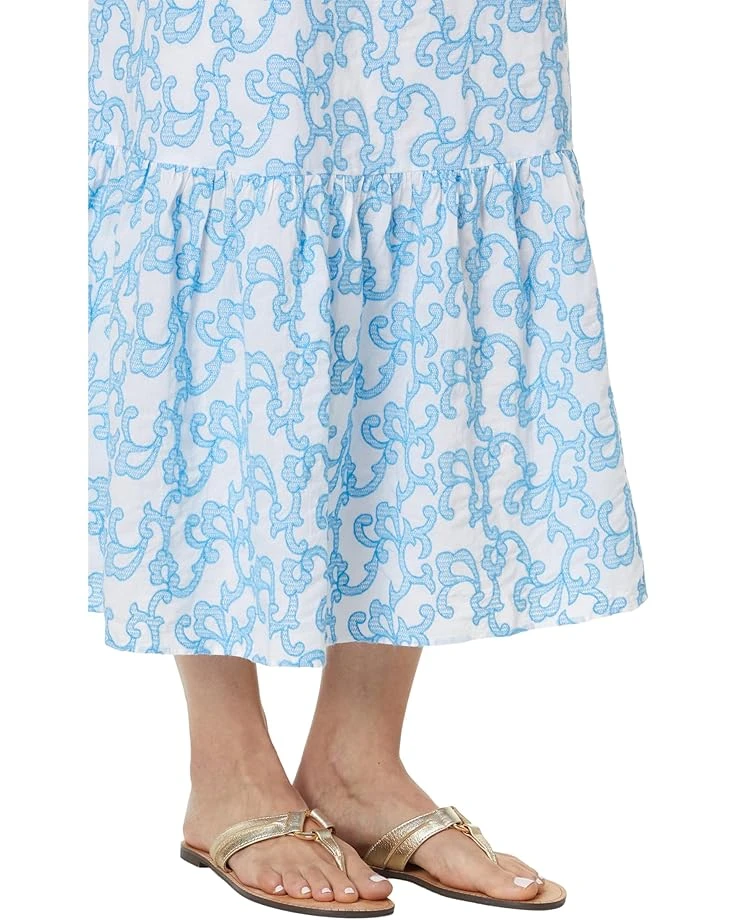 - Stay cool and comfortable all day wearing the Lilly Pulitzer® Amerie Embroidered Cotton dress. This printed dress is styled with a scoop neckline, a tall ruffle at the hem, and a sleeveless design. The cotton fabric of the dress takes your comfort to the next level. Make your style statement by wearing this cotton dress.