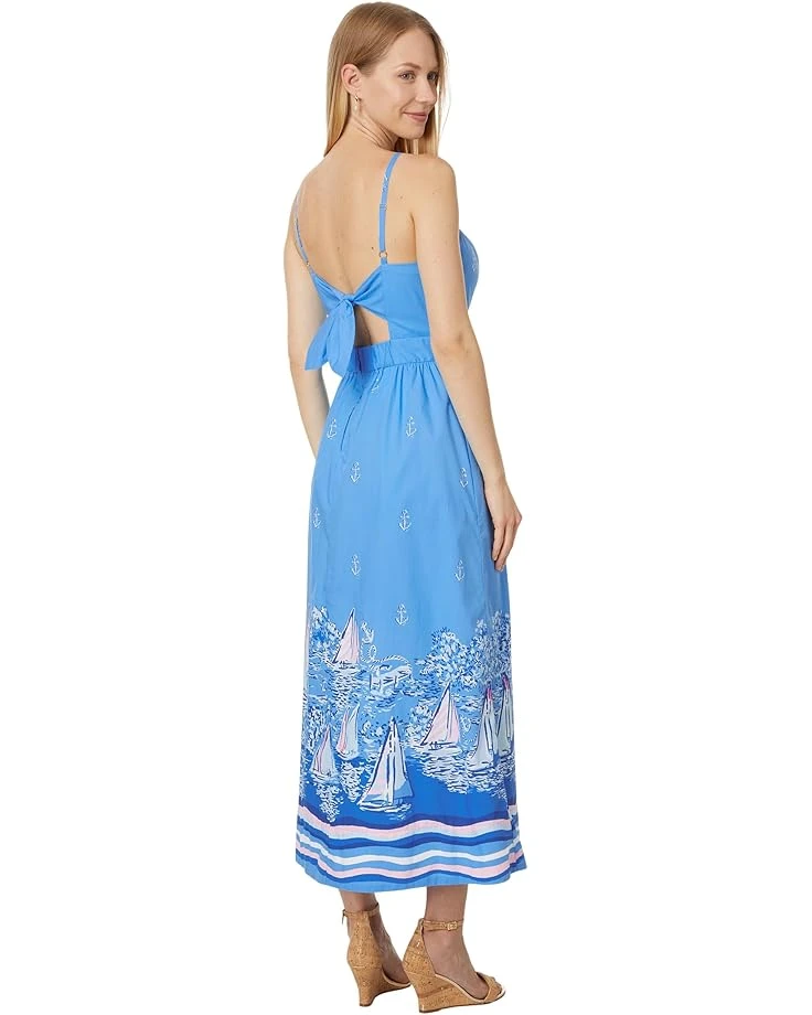 - Dazzle all day with your elegant vibe wearing the Lilly Pulitzer® Charlese Cotton Halter Mi Dress. The midi dress features a fit-and-flare silhouette, halter neckline, tie-back bodice detail, side seam pockets, and pleated skirt with a chic print.
