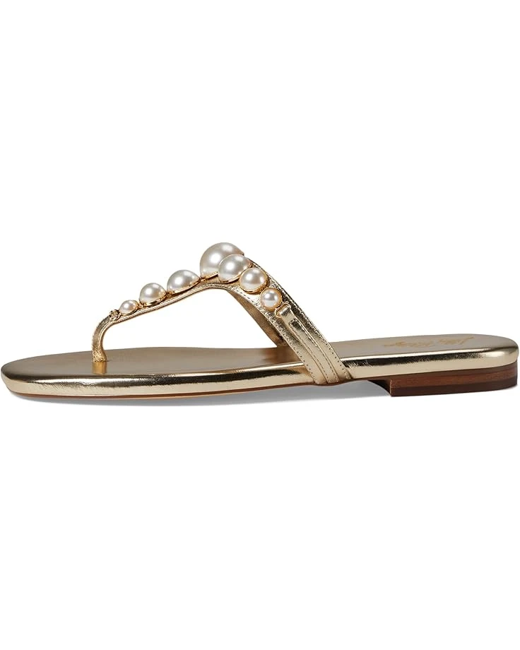 - Island hopping or city exploring? Lilly Pulitzer® Cloe Sandals: Chic comfort that goes anywhere. Slip into luxury with metallic leather, pearl embellishments, and a trendy square toe. Experience comfort with the new LP plush padded footbed, while the faux leather upper construction, rubber outsole, and insole ensure durability and long-lasting wear. Elevate your look and stride confidently in these versatile, unlined sandals.