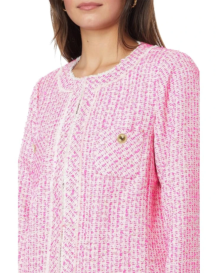 - Look elegant under sunshine on a day of fall by wearing Lilly Pulitzer® Dashielle Jacket. It features straight fit, open front, tweed design, and long sleeves. A mock neck, chest patch pockets, and front flap pockets make the jacket stylish.