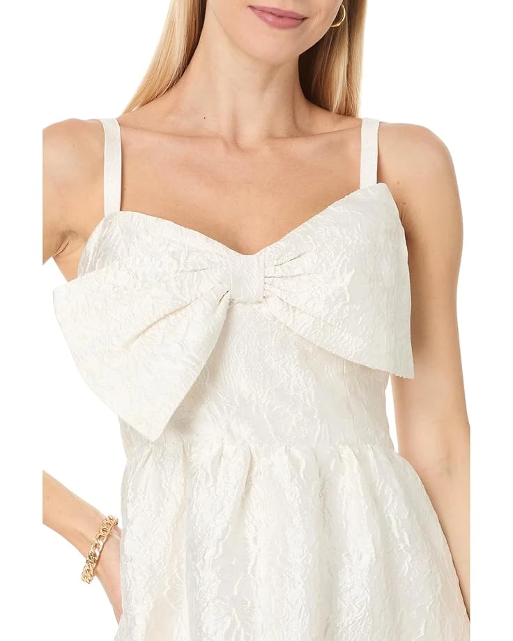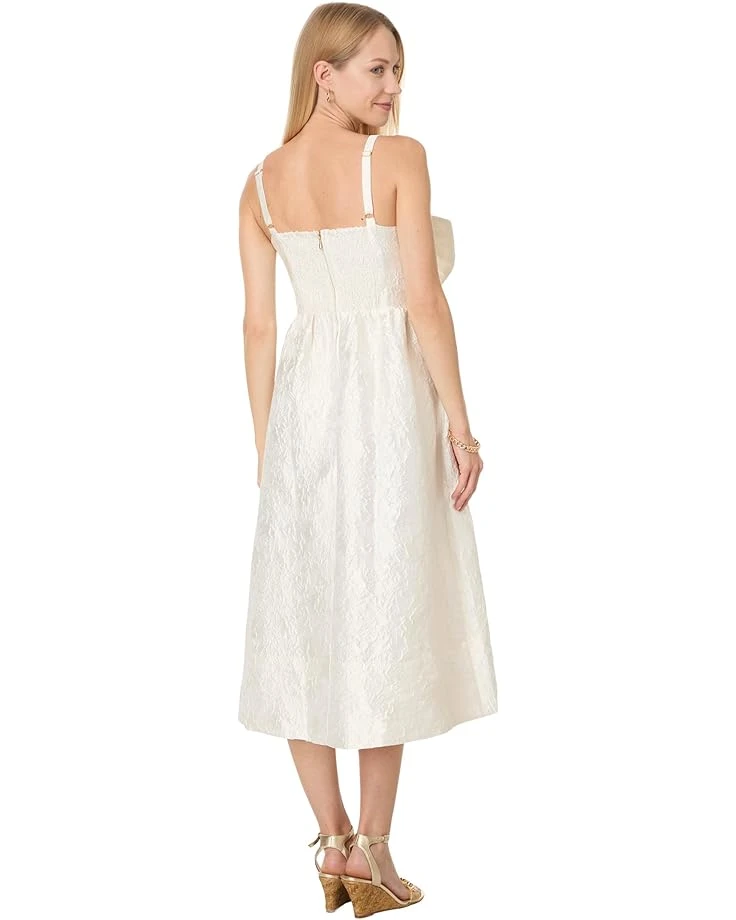 - Sculpt your fashion story wearing the Lilly Pulitzer® Ellara Jacquard Midi Bow. This fit-and-flare dress features sweetheart neckline with smocked back panel, sleeveless style with adjustable spaghetti straps. It comes with back zippered closure for bold look.