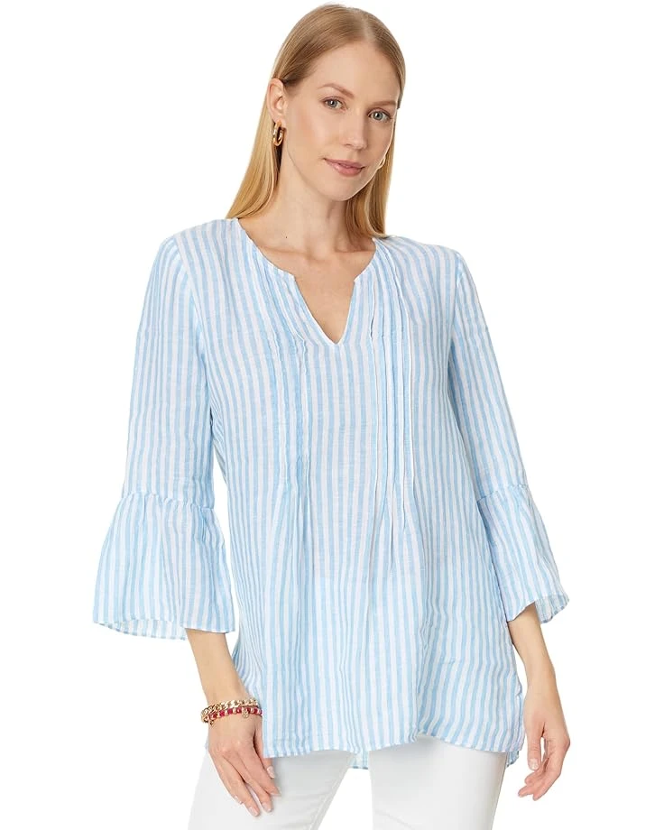 - With its timeless flair and easy fit for exceptional comfort, the Lilly Pulitzer® Hollie Linen Tunic feels soft against the skin and makes it ideal for daily wear. The tunic features a notch neck, three-fourth sleeves, allover striped pattern, pleats on the front, and side slits on the hem.