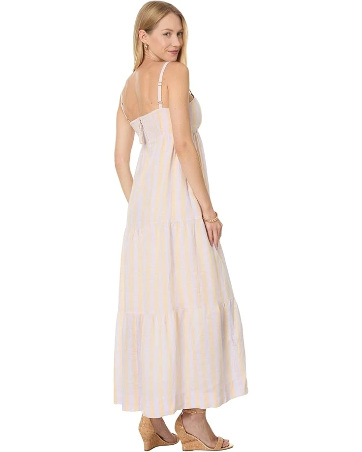- Step into effortless elegance with the Lilly Pulitzer® Javanne Linen Maxi Dress. This dreamy ankle-length creation combines a scoop neck and sleeveless design with a classic fit for a look that’s both timeless and on-trend. Featuring adjustable spaghetti straps, bodice cups, and a flattering empire waist, it offers a perfect blend of style and comfort. The tiered skirt and smocked back panel add a touch of playful sophistication, while the pull-on design ensures easy wear.