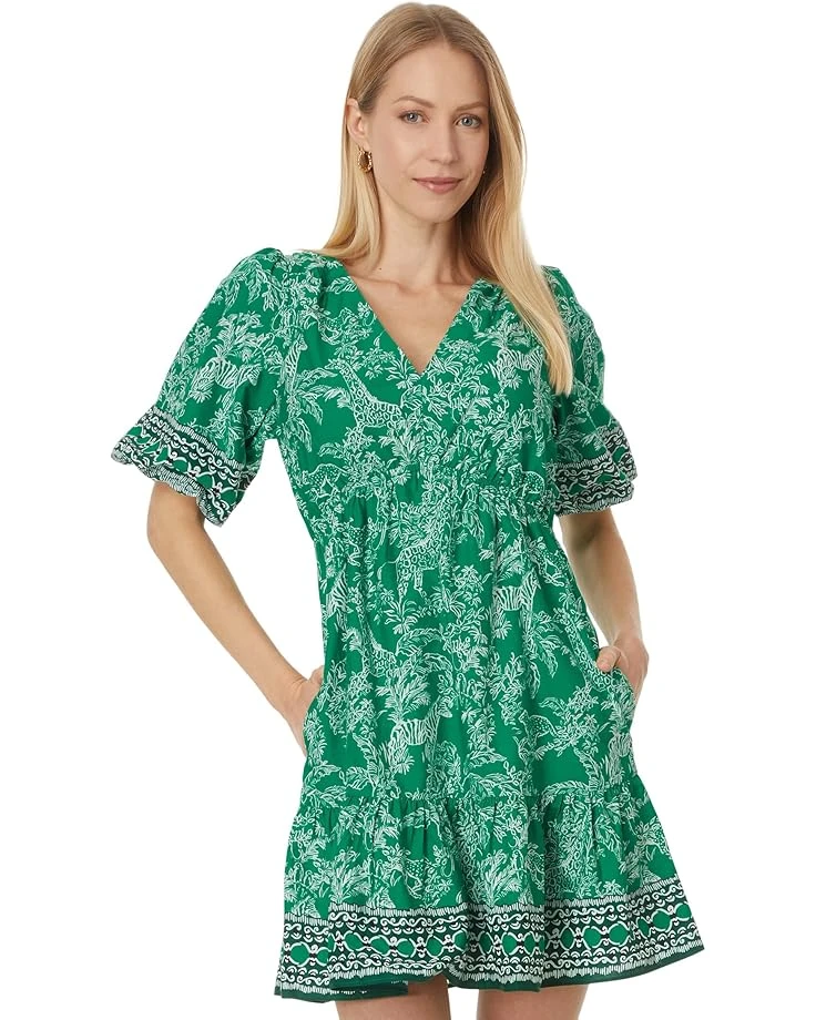 - The Lilly Pulitzer® Kentlee Dress is an easy fit, V-neck style with elastic at empire waist, short sleeves, hem ruffle, and side seam pockets.
