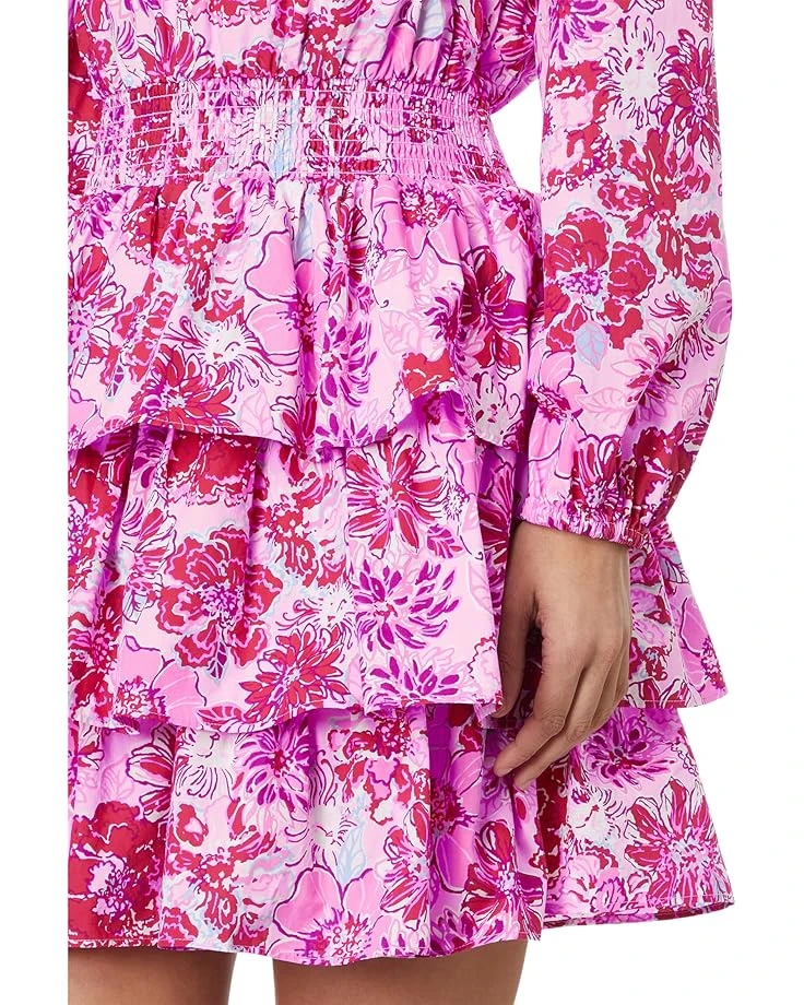 - Featuring a vibrant floral print all over, the Lilly Pulitzer® Khloey Long Sleeve Cotton dress is a great choice for casual outings and parties. The smocked waist of the dress accentuates your curves for a flattering fit. This printed dress comes with a tiered ruffle skirt that gives it a chic look. Whether you’re dressing up for a party or a casual date, this floral dress is a great choice.