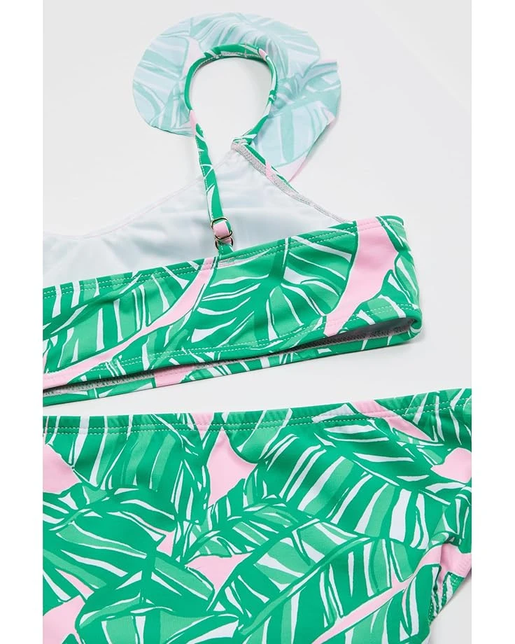 - Make your little one’s holiday extra special with Lilly Pulitzer® Kids Mini Kasme Bikini. This pull-on style bikini set has ruffle details with a beautiful all-over leaf pattern. The sleeveless set has a gold loop and sliders on the top with matching bottoms. The bikini top has a charming scoop neck. The matching bottom has an elasticated waistband with moderate rear coverage. With a standard fit silhouette, this set will soon become your kids’ favorite.