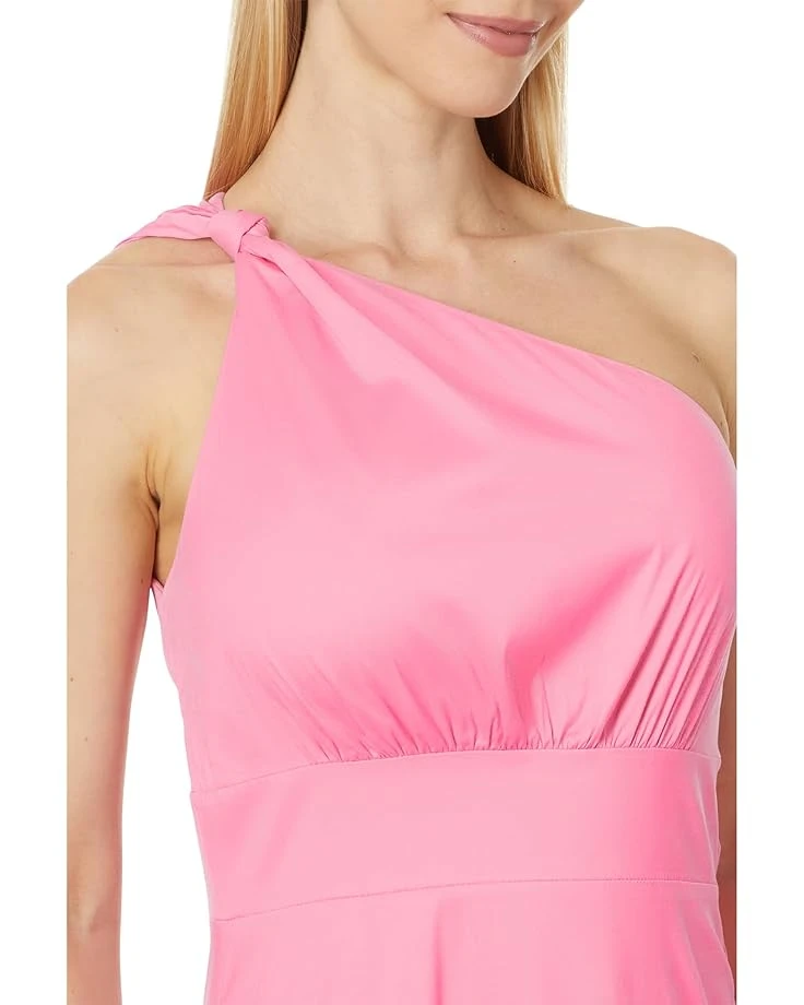 - Flaunt a radiating glow donning Lilly Pulitzer® Lucilyn One Shoulder Cott Dress. The maxi dress features a fit-and-flare silhouette, one-shoulder design with knot detail at shoulder, concealed side zipper closure, a vibrant solid pattern, and asymmetrical hem tiers.