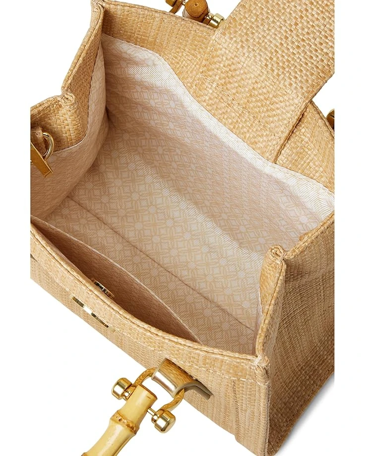 - A little luxury, a lot of charm! The Lilly Pulitzer® Mari Mini Bag is the ultimate blend of beachy elegance and modern versatility. Crafted from lightweight Panama straw, this mini bag radiates effortless coastal chic, making it your go-to for sunny adventures and stylish evenings alike. The natural bamboo top handles add a sophisticated touch, while the detachable gold metal chain lets you switch from handheld to crossbody in a snap. A secure zippered closure keeps your essentials safe inside the printed logo lining, complete with a handy pocket for easy organization. Small in size but big on statement, it’s your perfect summer companion!