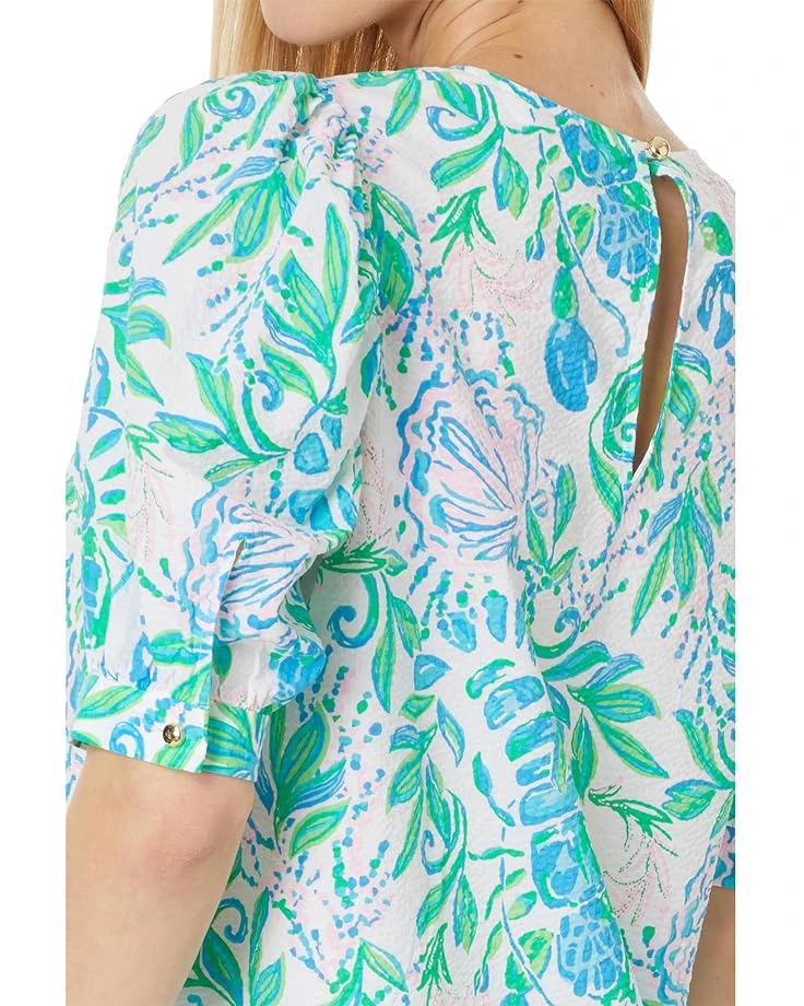- Floral fantasia: effortless chic wearing Lilly Pulitzer® Masieleigh Short Sleeve Cotton Top. Embrace the vibe with an easy fit and crew neck, perfect for any occasion. Say hello to comfort with elbow-length sleeves for a touch of flair. Classic floral print adds timeless charm, while the pull-on design ensures convenience without compromising style.