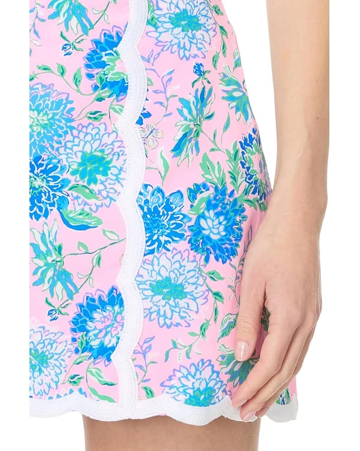 - Slay a stylish look by wearing Lilly Pulitzer® Michelina Mini Skort. The pull-on style skort has a scallop detail with back zipper closure for a custom fit. The skort has a skirt back design, anove-the-knee length, and the standard fit. The intricate floral print elevates the overall look, making this mid-rise skort perfect to pair with your casual tee and sneakers.