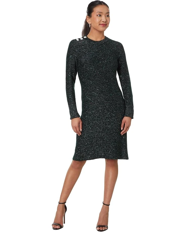 - Get ready to dazzle on your chilly night outings donning the Lilly Pulitzer® Morgen Sequin Sweater Dress which is constructed in a soft and fluffy fabric with glittery sequins dusted all over. Tailored in a straight fit, the dress displays a crew neck perfectly paired with long sleeves and an eye-catching trio of rhinestone buttons at the shoulder.