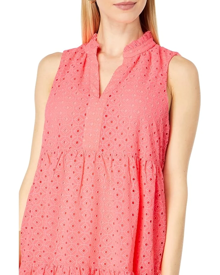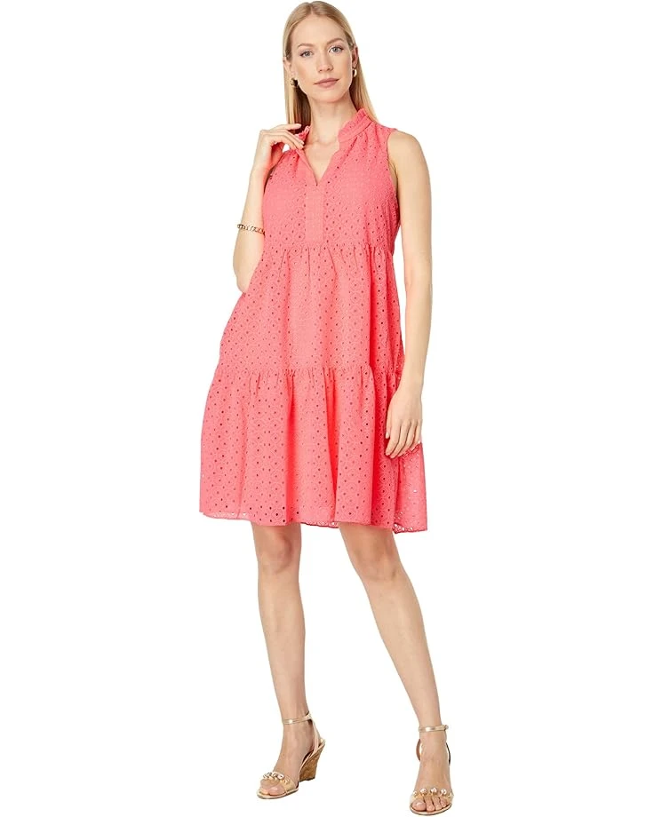 - You’ll feel ready to embrace your beauty in the enchanting Lilly Pulitzer® Novella Dress! Crafted for an all day/night style and comfort, the dress features a mandarin collar with v-cut, cut-off sleeves, quilt pattern design, and a ruffled hemline.