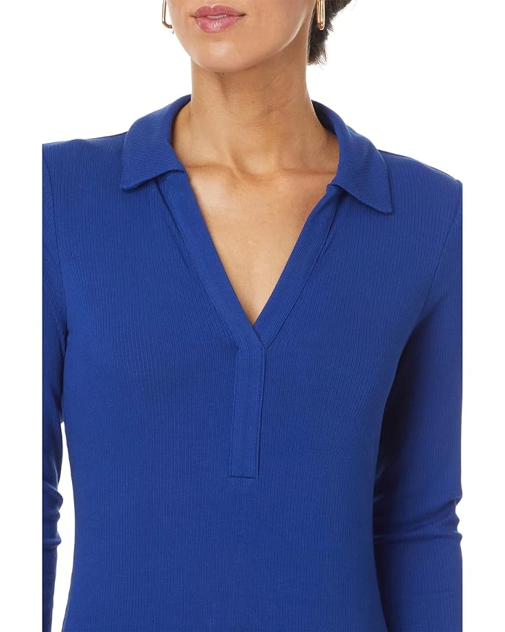 - make your fashion choice as unique as you are by wearing Lilly Pulitzer® Ollie 3/4 Sleeve Maxi Polo dress. The dress features a spread collar with a split neckline and placket. The quarter sleeves hit below the elbow. An A-line midi is slit from the sides. It has a ribbed design allover with a straight fit that flaunts your curves. Intended to hit at the ankle.