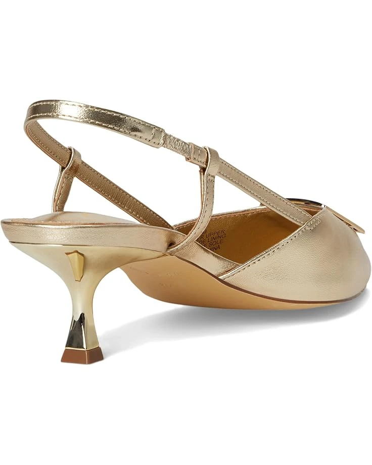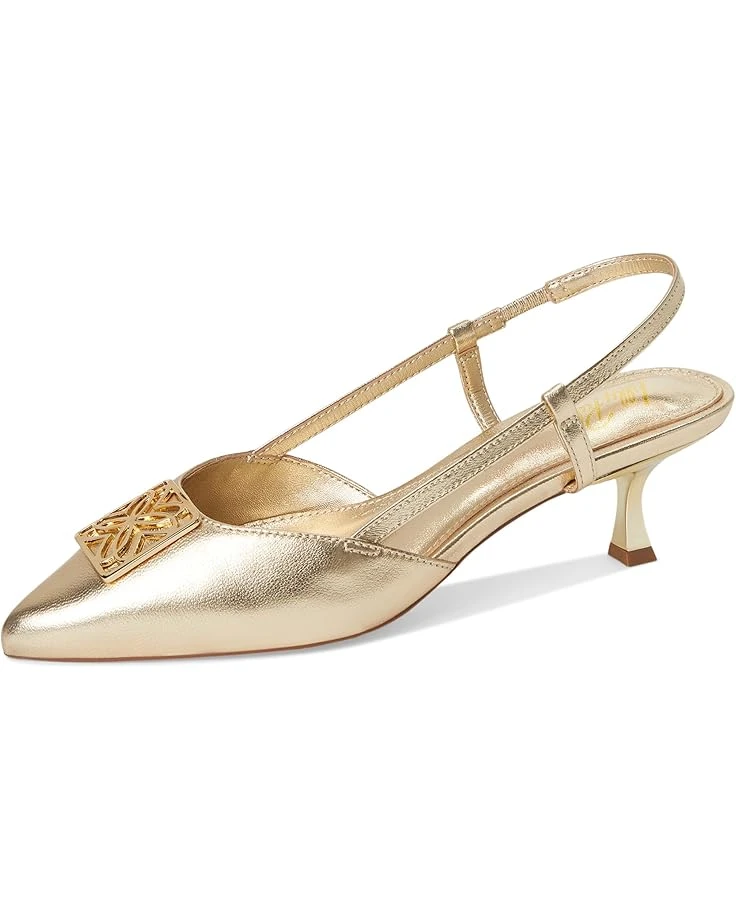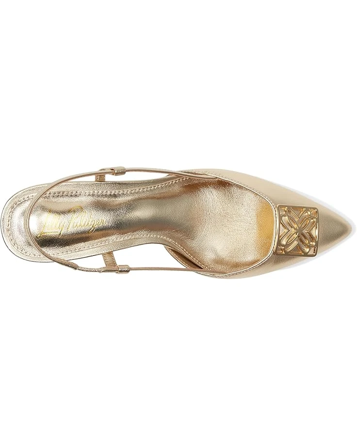 - Step out with a gleaming shimmer wearing the Lilly Pulitzer® Schuyler Kitten Heel Slingback. Featuring an angled kitten heel and a sophisticated metal logo detail, the footwear has LP Plush padded footbed, pointy toe shape and leather upper construction. With a convenient slip-on design and a gored slingback strap, these sandals are perfect for making a statement wherever you go.